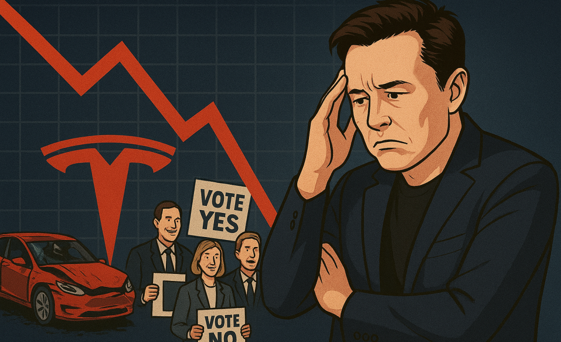 The decline comes just days before shareholders vote on the plan, which has divided major institutional investors and reignited debate over Musk’s influence at the electric-vehicle maker.